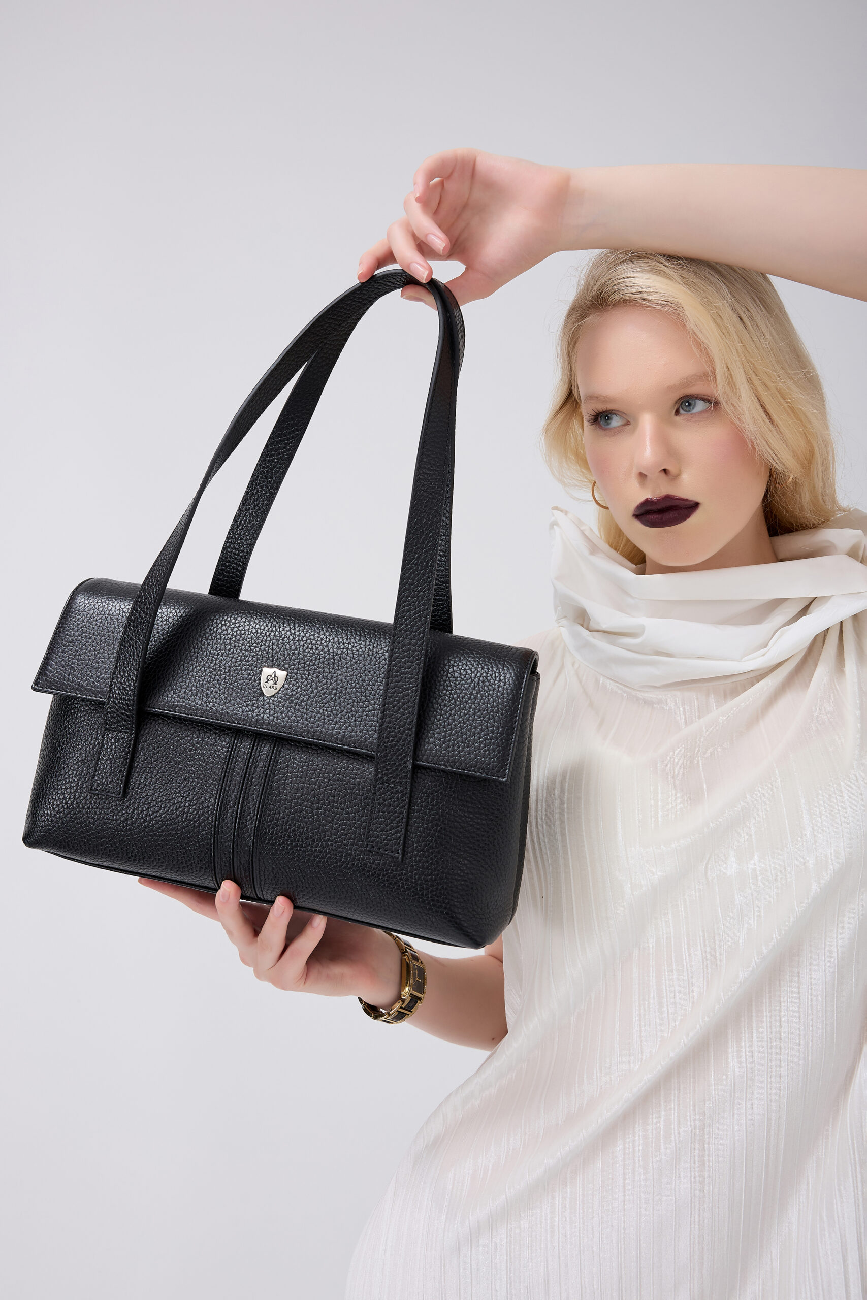 A Class Hakiki Deri Siyah Flotr Bayan Omuz çantası 33,5X19,5X10 cm