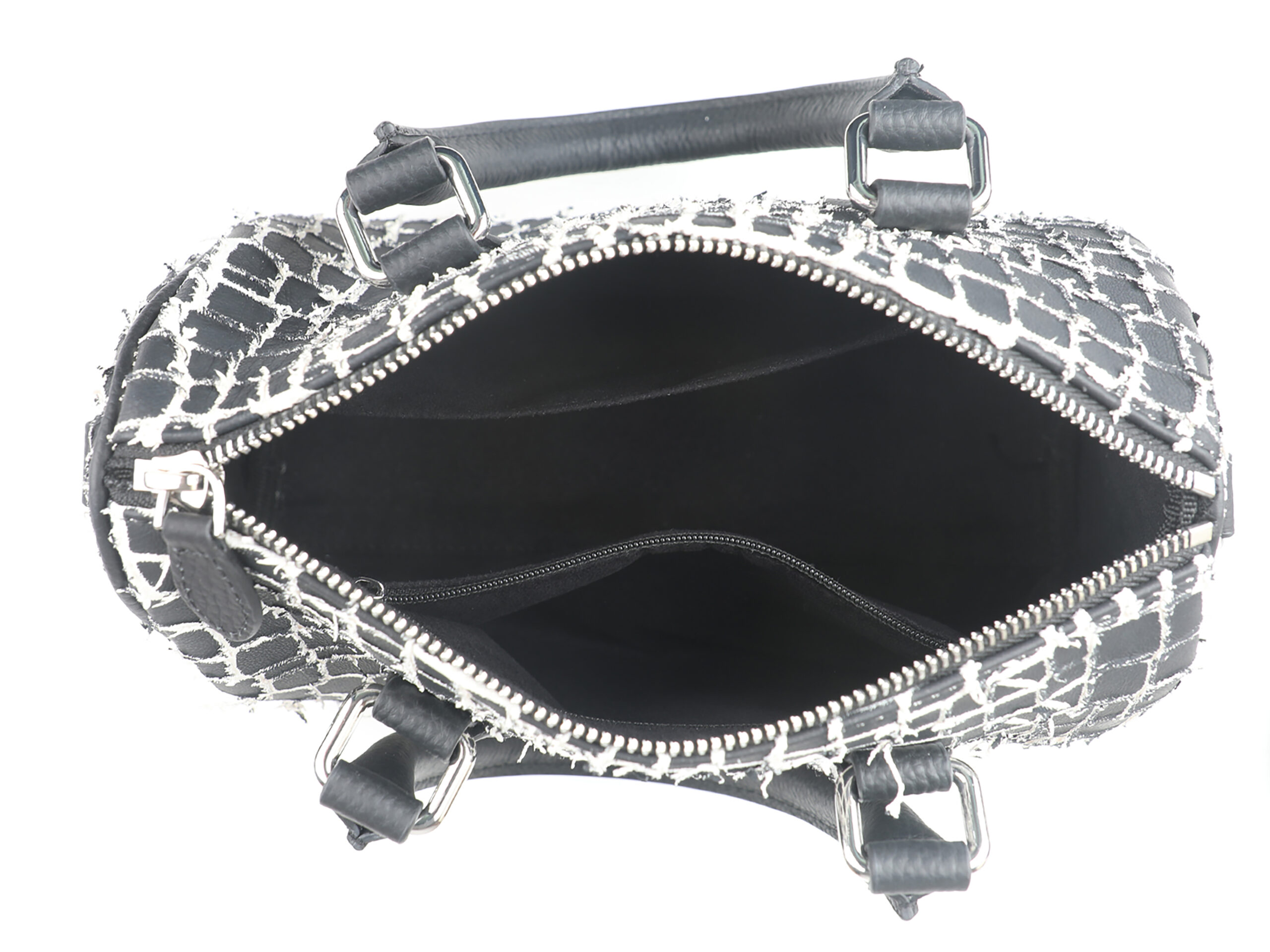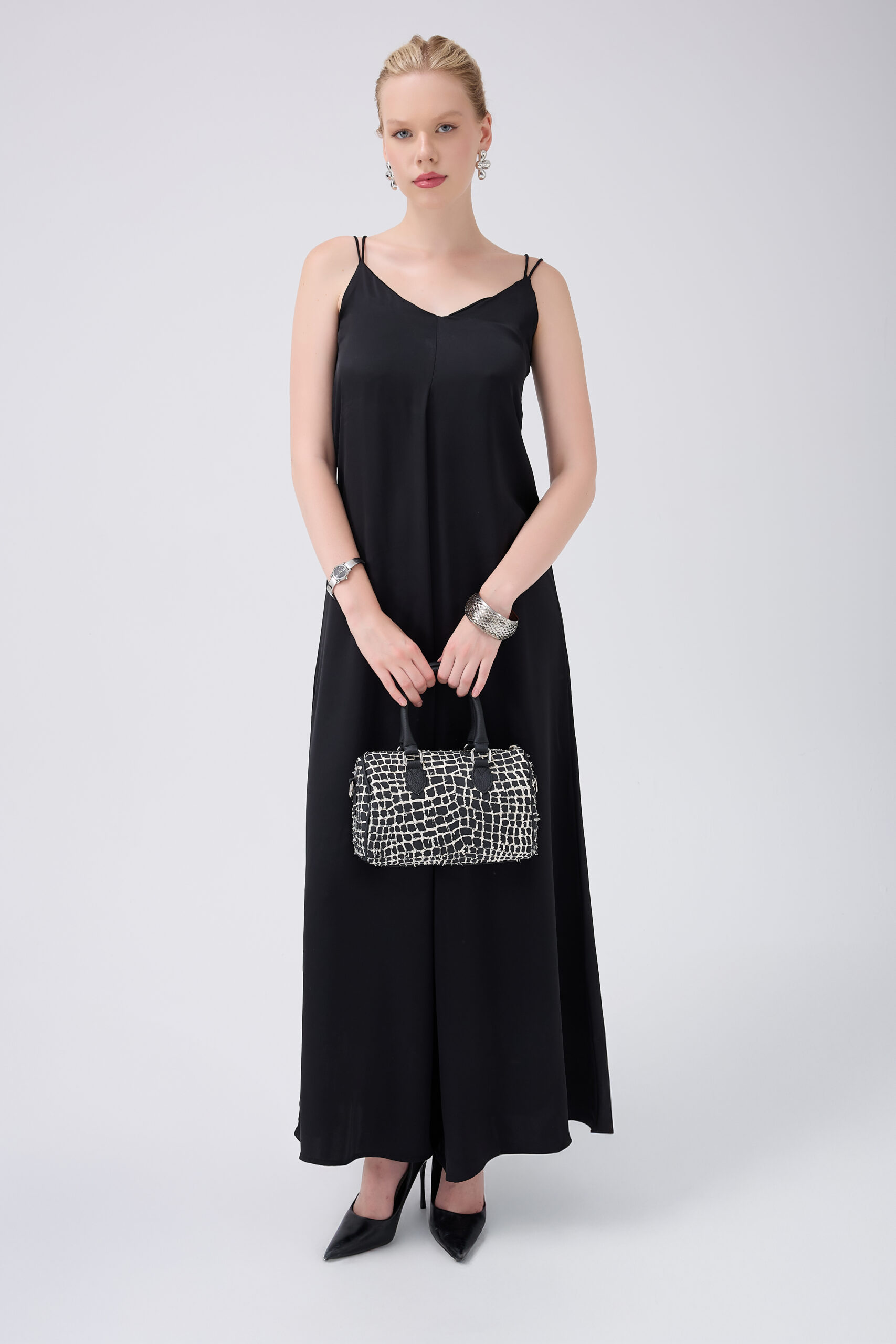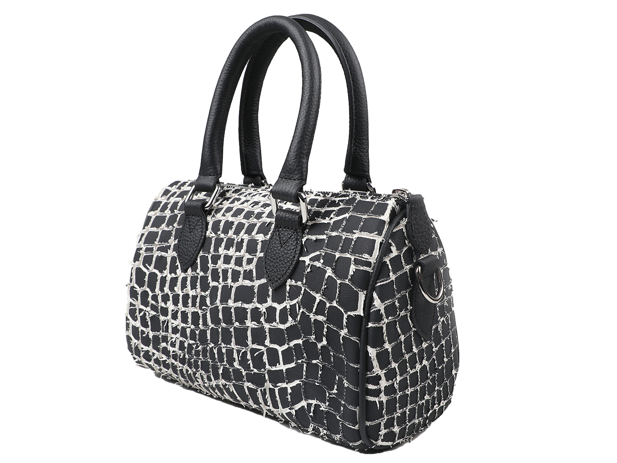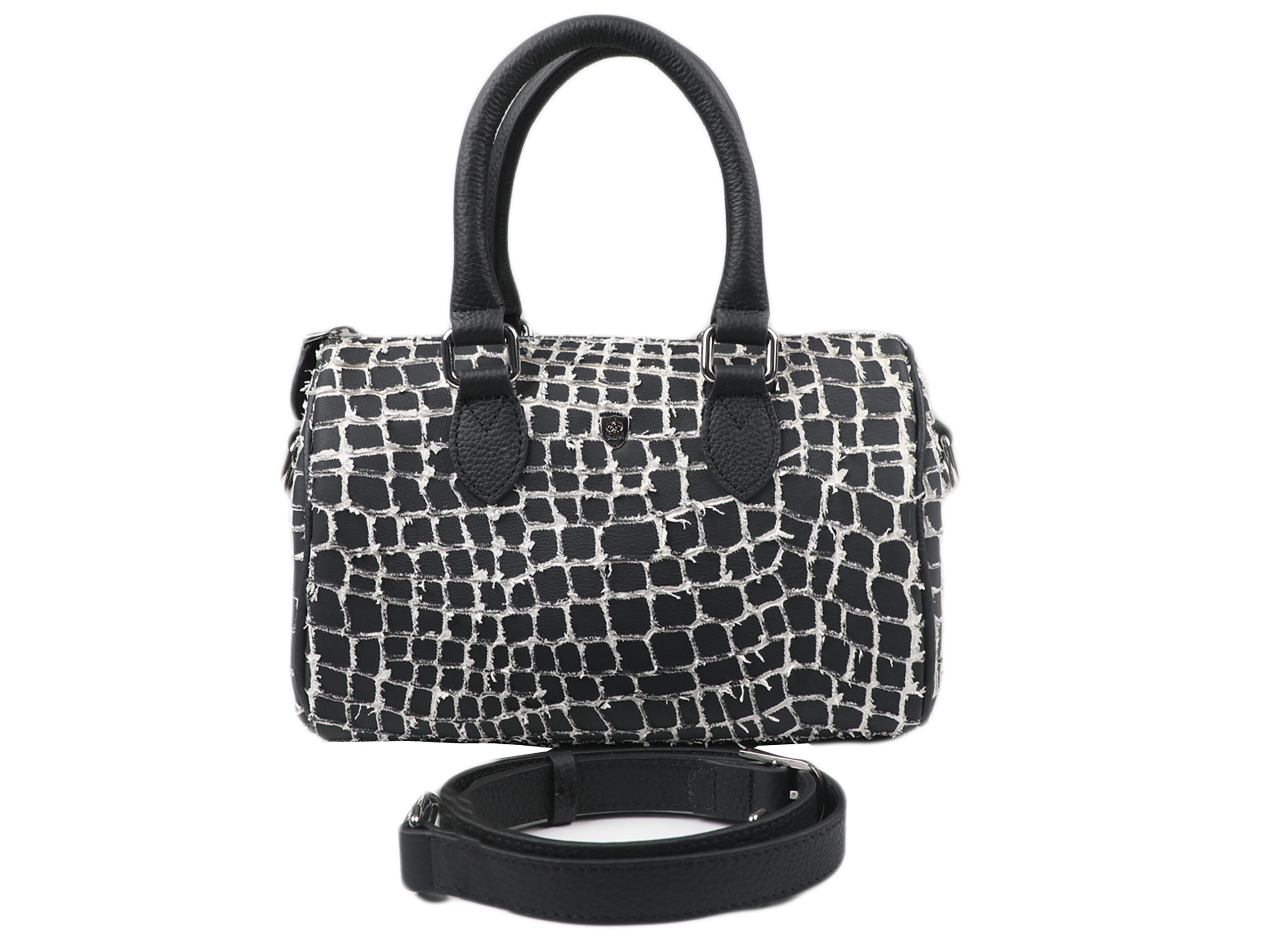 A Class Hakiki Özel Baskılı Siyah Dana Derisi El Çantası 25x15x11,5 cm