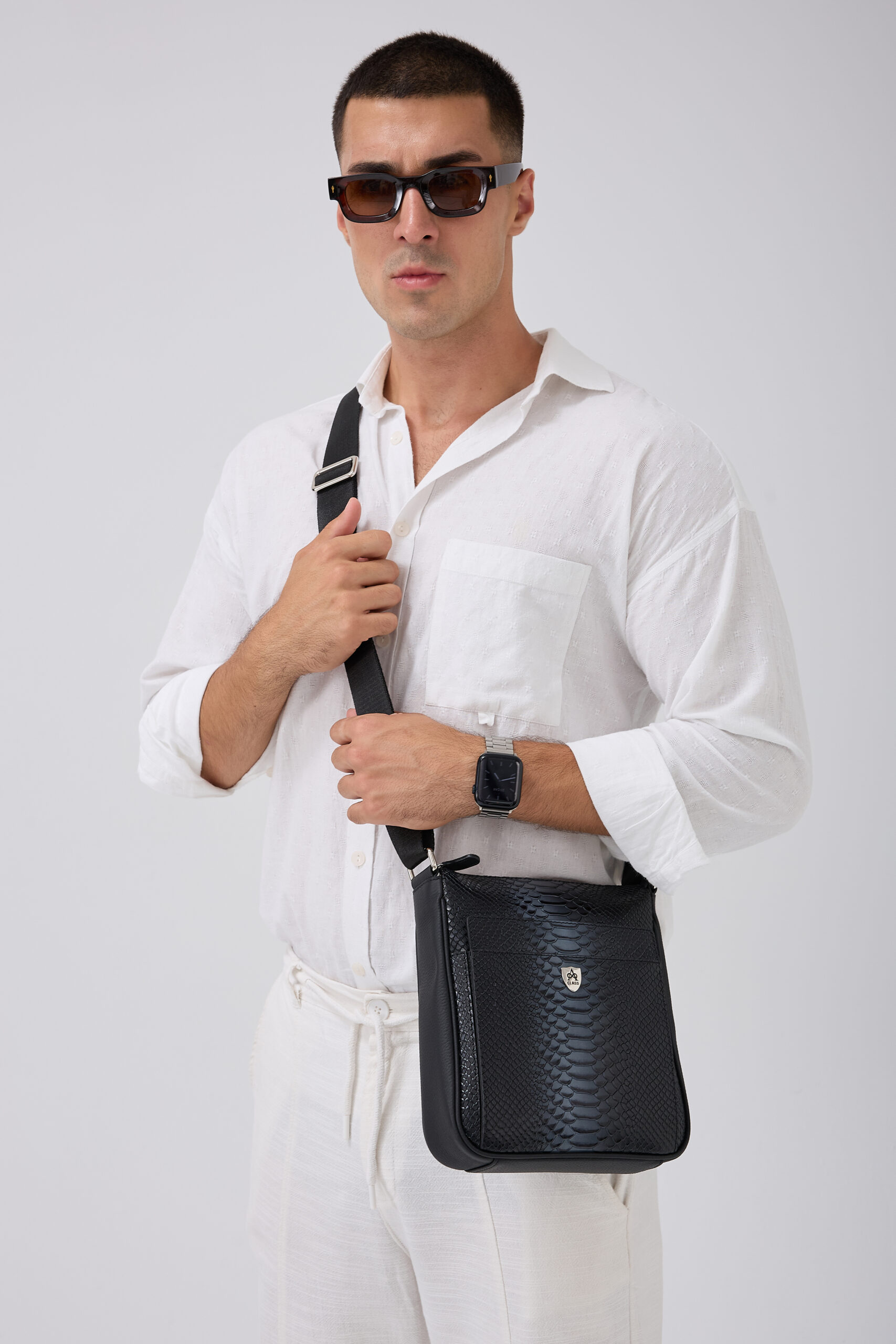 A Class Hakiki Deri Erkek Postacı çantası Mix Grey