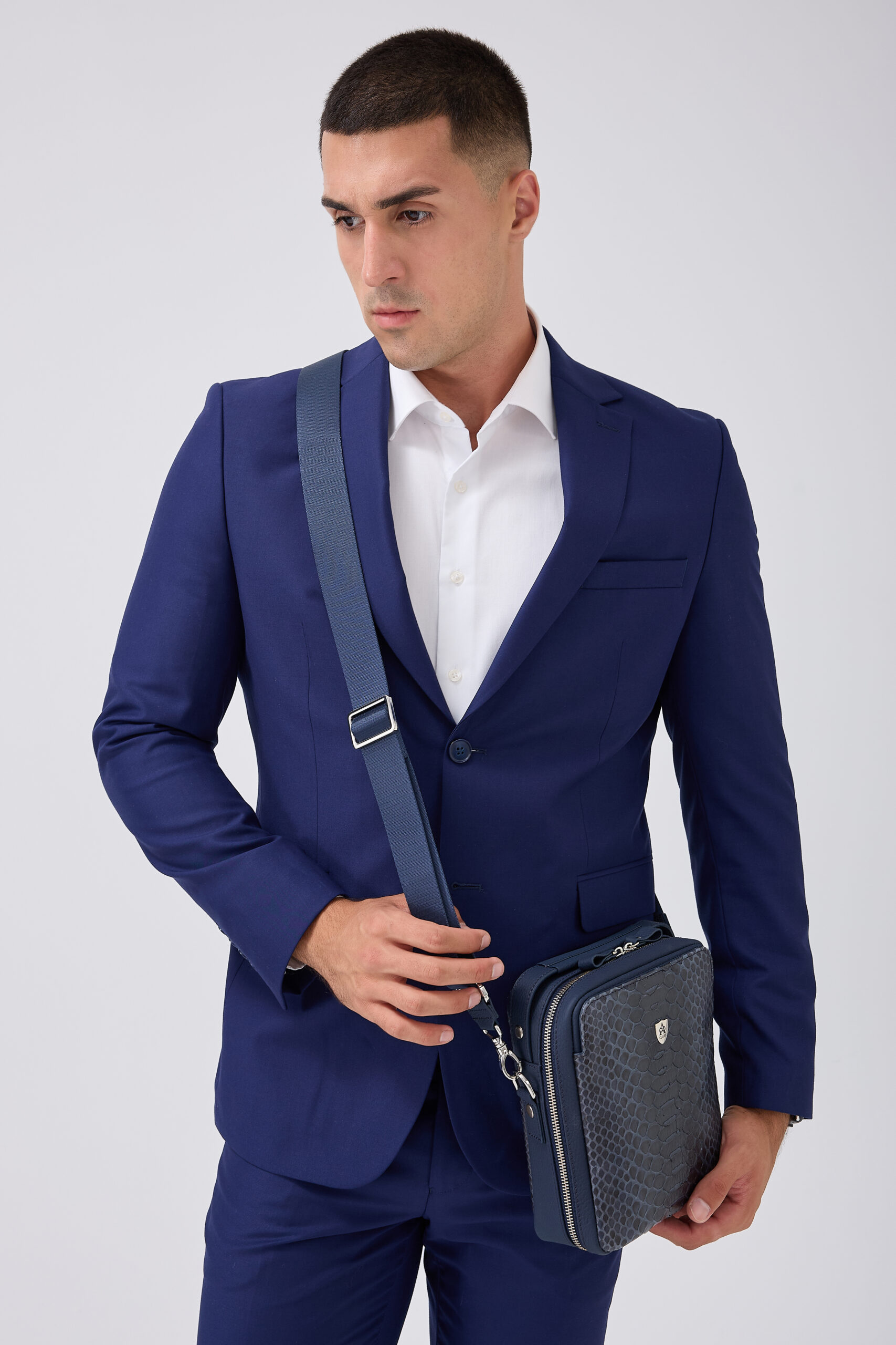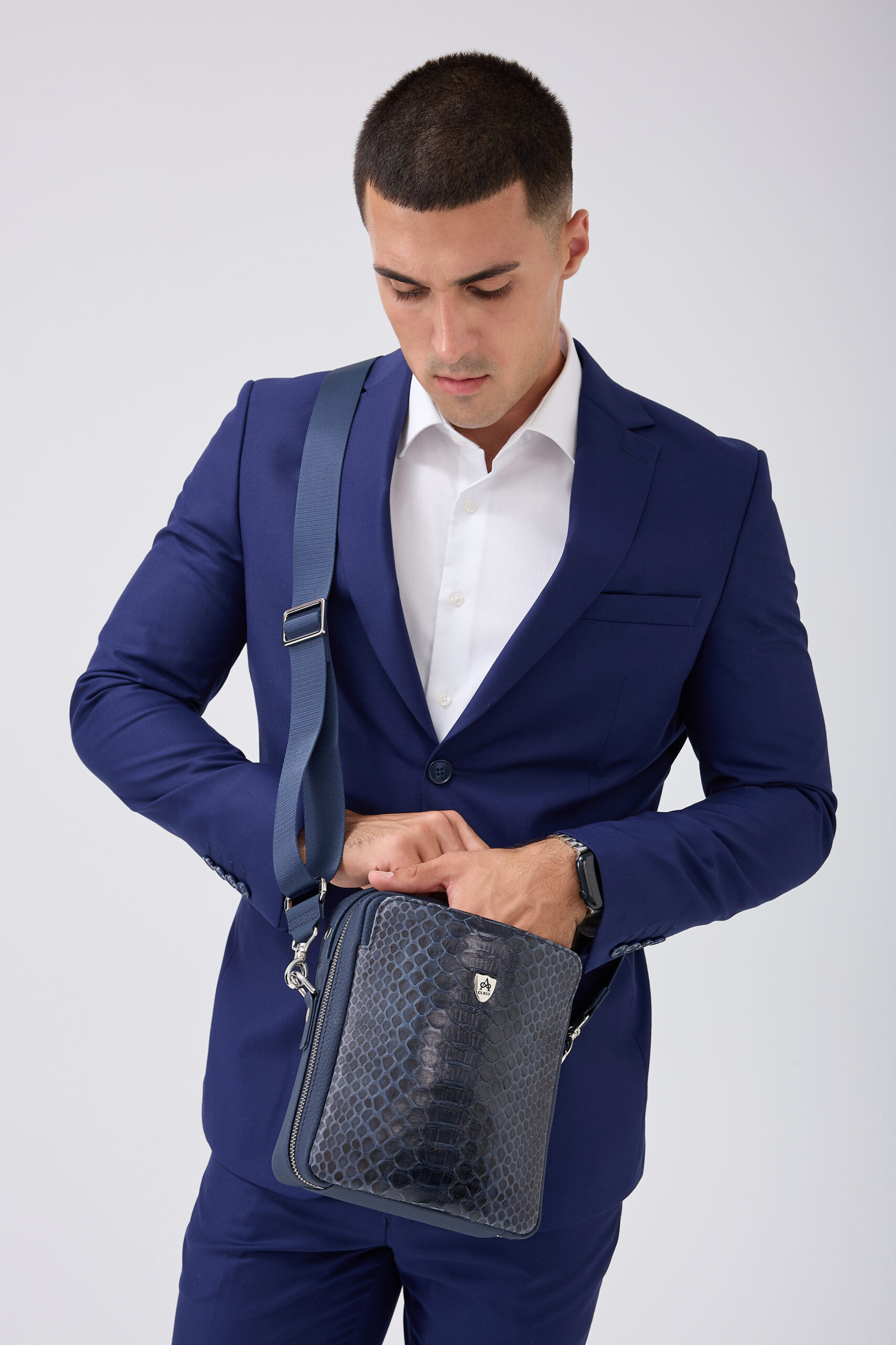 A Class Hakiki Piton Derisi Lacivert Erkek Postacı Çanta 19x22x6.5 cm