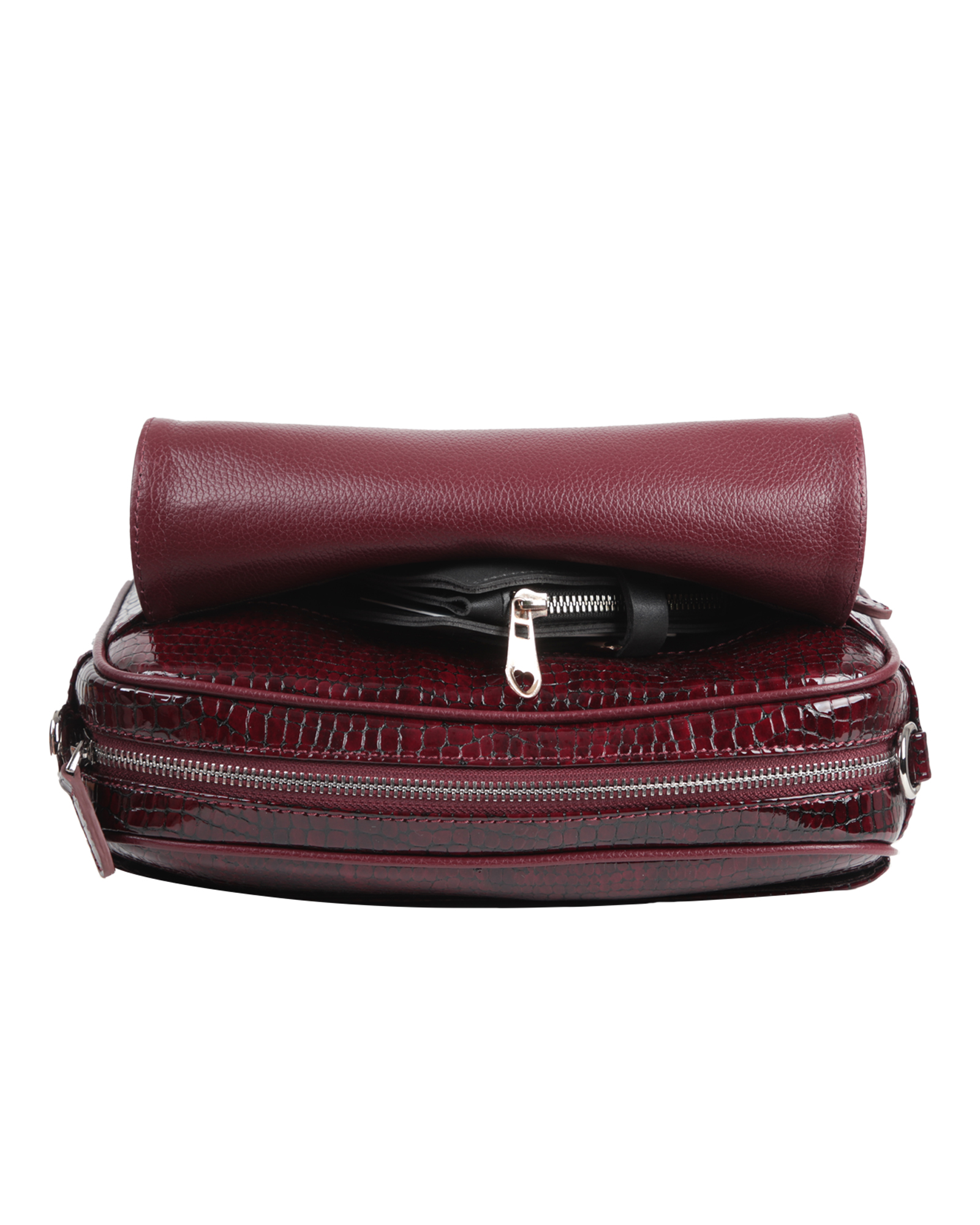 A Class Hakiki Deri Parlak Bordo Bayan El ve Omuz Çantası 26x19x10 Cm
