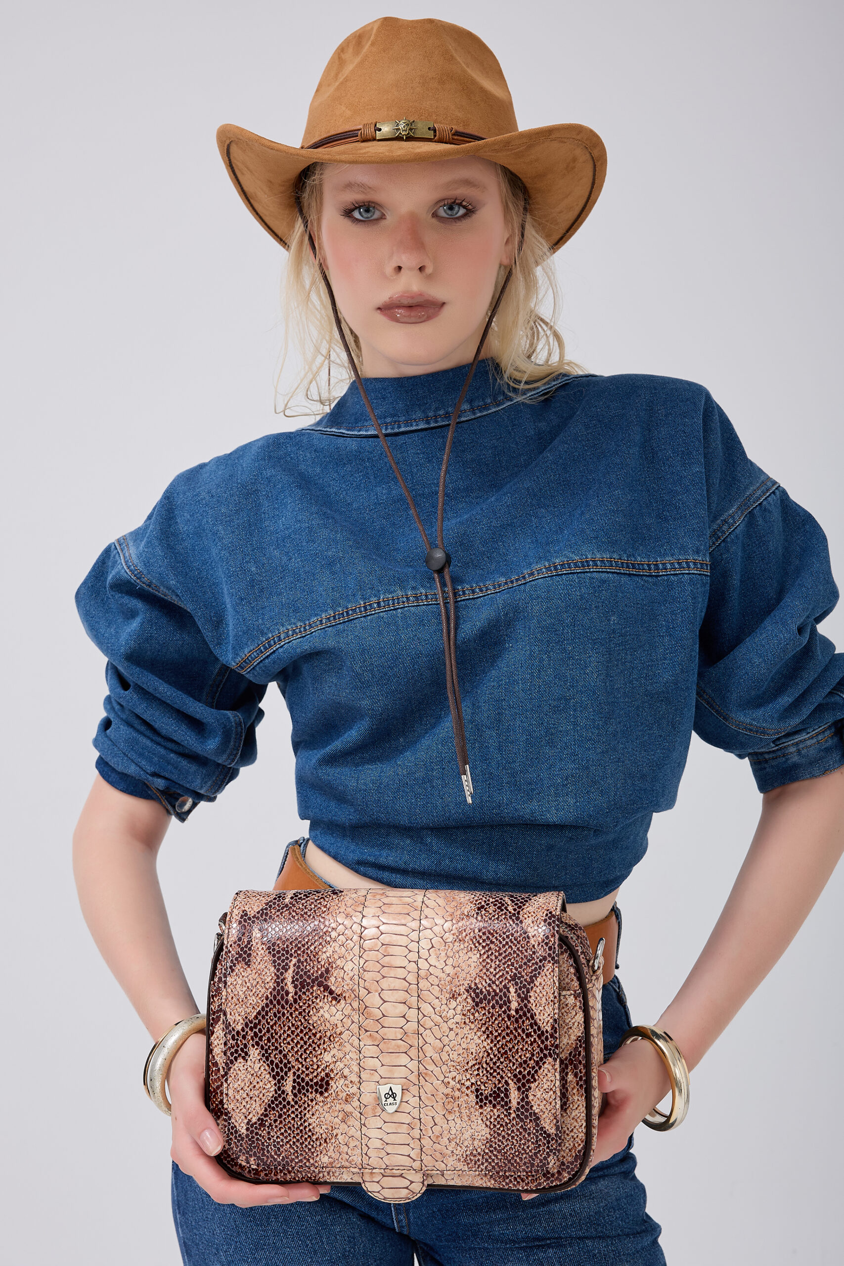 – Yüksek kaliteli hakiki deriden üretilmiş, uzun ömürlü kullanım sunar.; – Parlak bej rengiyle şıklığı ve zarafeti el çantanızda taşıyın.; – Yılan deseni detaylarıyla modern ve trend bir görünüm kazandırır.; – Hem gündüz hem de gece kullanımına uygun tasarlanmıştır; her ortamda stilinizi korur.; – Genç kullanıcıların enerjisine hitap ederken, tüm yaş gruplarına da hitap eder.; – Gerçek derinin sunduğu dayanıklılığı ve konforu hissedin.; – Sade düz deseni ile kolayca kombinleyebileceğiniz çok yönlülük sağlar.; – Tek parça olarak gelmesi pratik kullanım imkanı tanır.; – Çevre dostu üretim anlayışını benimseyerek sürdürülebilir moda tercihlerini destekler.